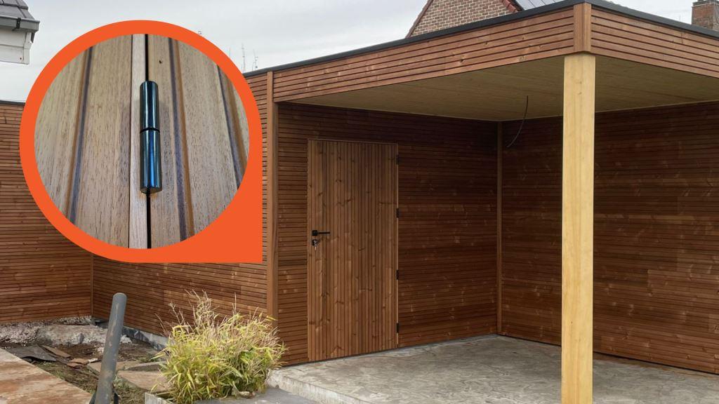 A crack on the outer part of the door at approximately 5 cm from the hinges? If the door of your garden house is installed in a corner, a clumsy move or the wind can make the door flip over, causing damage such as a crack. This is no structural defect. Install a doorstop to prevent the door from opening over 180°.
