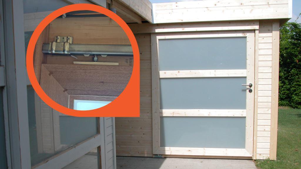 Note:If simply adjusting the door by removing the adjustment plates is not sufficient, we recommend dehumidifying or at least ventilating your garden house. Preferably, we avoid planing the door. If we plane a door in winter to prevent it from jamming, it may no longer close properly in summer.