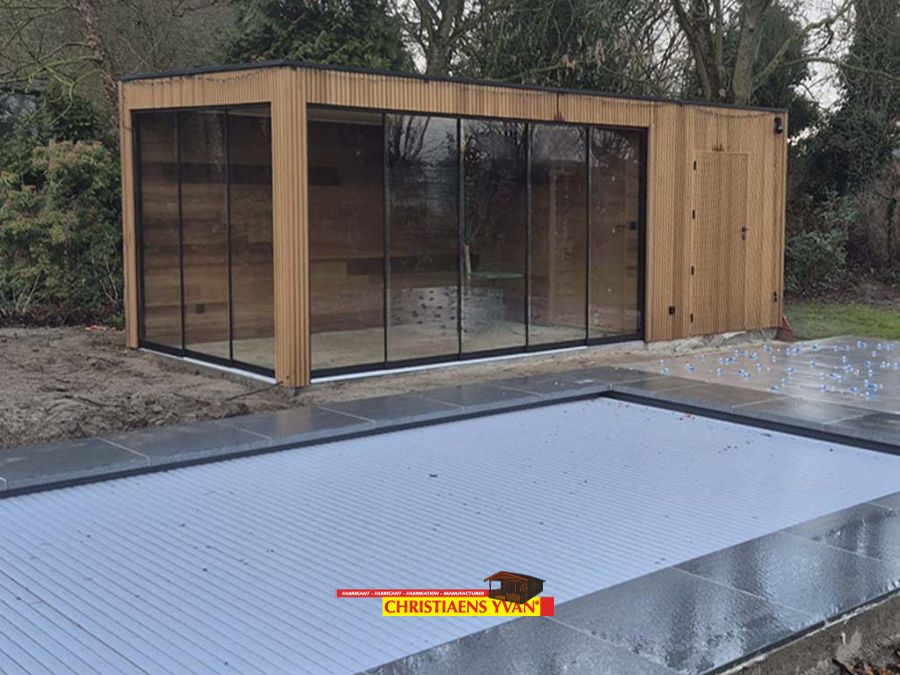 Cubusline ist ein modernes Gartenhaus mit einer luxuriösen Zedernfertigung. Die Tür ist in derselben Flache eingearbeitet wie die Wand und das ist ein Merkmal dieses minimalistischen Entwurfs. Dieses moderne Gartenhaus besteht aus Zedern und braucht keine weitere Behandlung.